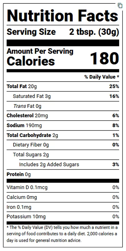Soybean Oil, Chopped Pickles, Egg Yolks and Whole Eggs, Water, Sugar, Distilled Vinegar, Salt, Capers, Lemon Juice Concentrate, Xanthan Gum, Natural Flavors.